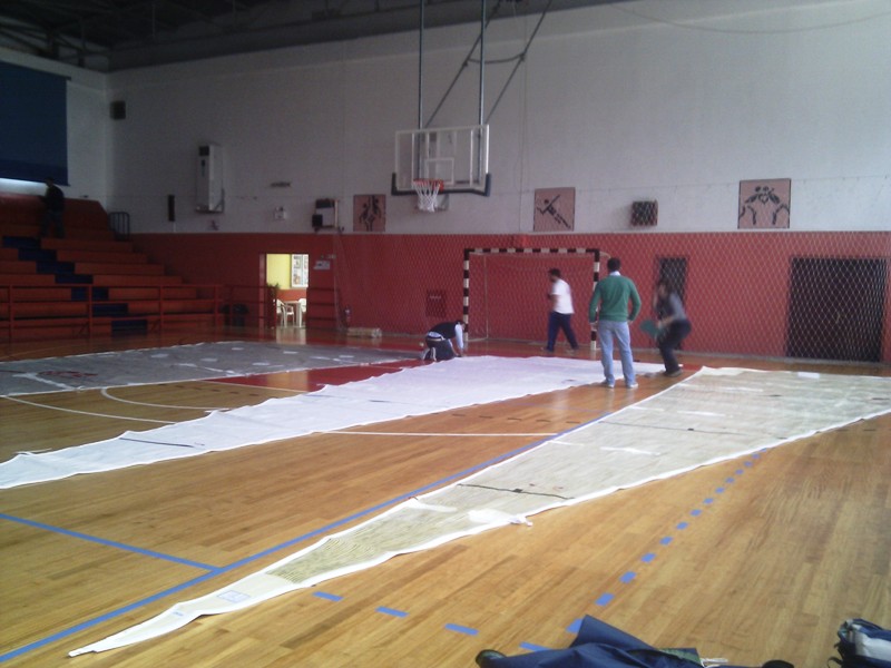 Με την έλευση του καταμετρητή, κ.Μαρίας Σπυριδέλη από τη Θεσσαλονίκη, ξεκίνησαν και οι διαδικασίες για την αλλαγή πιστοποιητικού του σκάφους. Η διαδικασία κράτησε 2 σχεδόν ημέρες. Η πρώτη ήταν αφιερωμένη σε μετρήσεις του σκάφους και η δεύτερη στα πανιά. Λόγω της συνεχούς βροχόπτωσης κατά τη καταμέτρηση των πανιών, αυτή έγινε στο κλειστό γήπεδο μπάσκετ του Δήμου Χίου. Εκ μέρους της ομάδας μας θα θέλαμε να ευχαριστήσουμε πολύ τους υπευθύνους του γηπέδου που μας το εμπιστεύθηκαν.